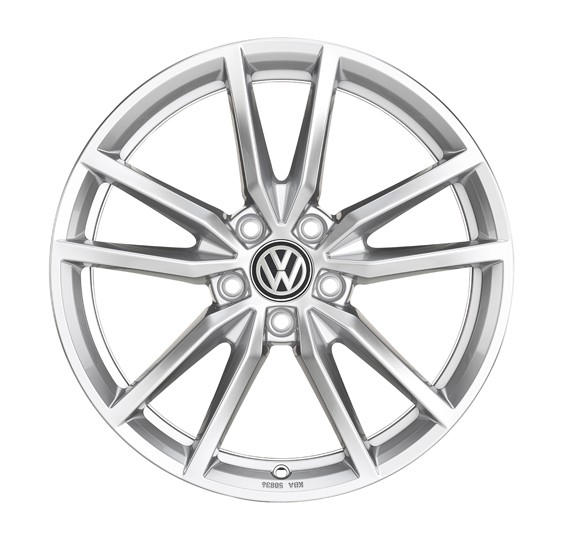 Dynamic presence with the 18” Pretoria alloy wheel from the R wheel design programme of the Golf R. The wheel in the colour Sterling Silver emphasises the sportiness of your car with its open double-spoke design. Give your Golf an R look with the original Pretoria wheel design of the R Golf. The alloy wheel has been tested according to the strict specifications of the Volkswagen Group, guaranteeing you maximum safety and functionality.